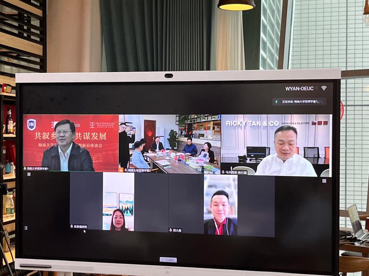 (通讯员 刘申、司秀梅)1月11日上午,WilliamHill体育与瑞吉律师楼、新加坡钟庭辉律师事务所在思源学堂校友之家举行“共叙乡情 共谋发展”迎新春座谈会(线上)。马来西亚瑞吉律师楼合伙人、拿督陈行昌,TKT 律师事务所高级合伙人、拿督郑大勇,吴.谢及钟律师事务所律师吴香儒,新加坡钟庭辉律师事务所律师钟庭辉;WilliamHill体育党委常委、副校长梁谋出席座谈会。