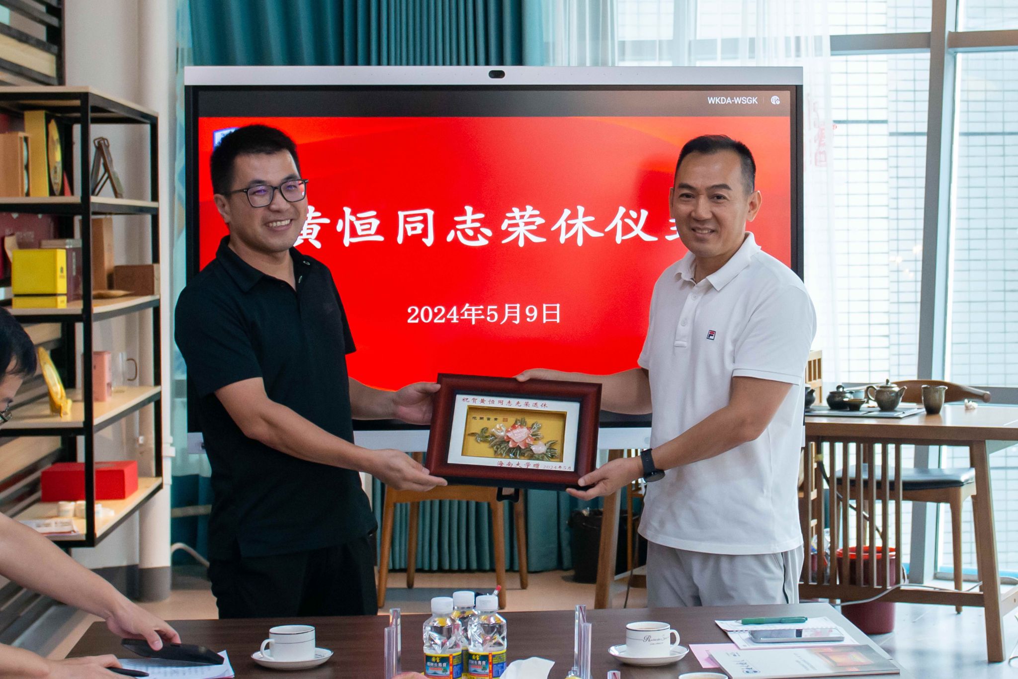 2024年5月9日下午,对外联络与校友事务处(海外乡亲联谊中心)在思源学堂校友之家举行黄恒同志荣休座谈会。对外联络与校友事务处处长俞花美、审计处处长张乃脆、招标与采购中心主任向福英、人文学院党委书记杨元广、党政办副主任凌雪冰、组织部副部长徐望来、人事处副处长刘佳扣、南海书院党委副书记王一凡,以及1986级应用电子专业校友、海南永安集团董事长、海口校友会会长吕立彪,1986级应用电子专业校友、海南特区国际旅行社副总经理、海口校友会常务副会长李才好等出席,为黄恒同志送上真挚的祝福,表达崇高的敬意。座谈会由对外联络与校友事务处副处长林仕岛主持。
