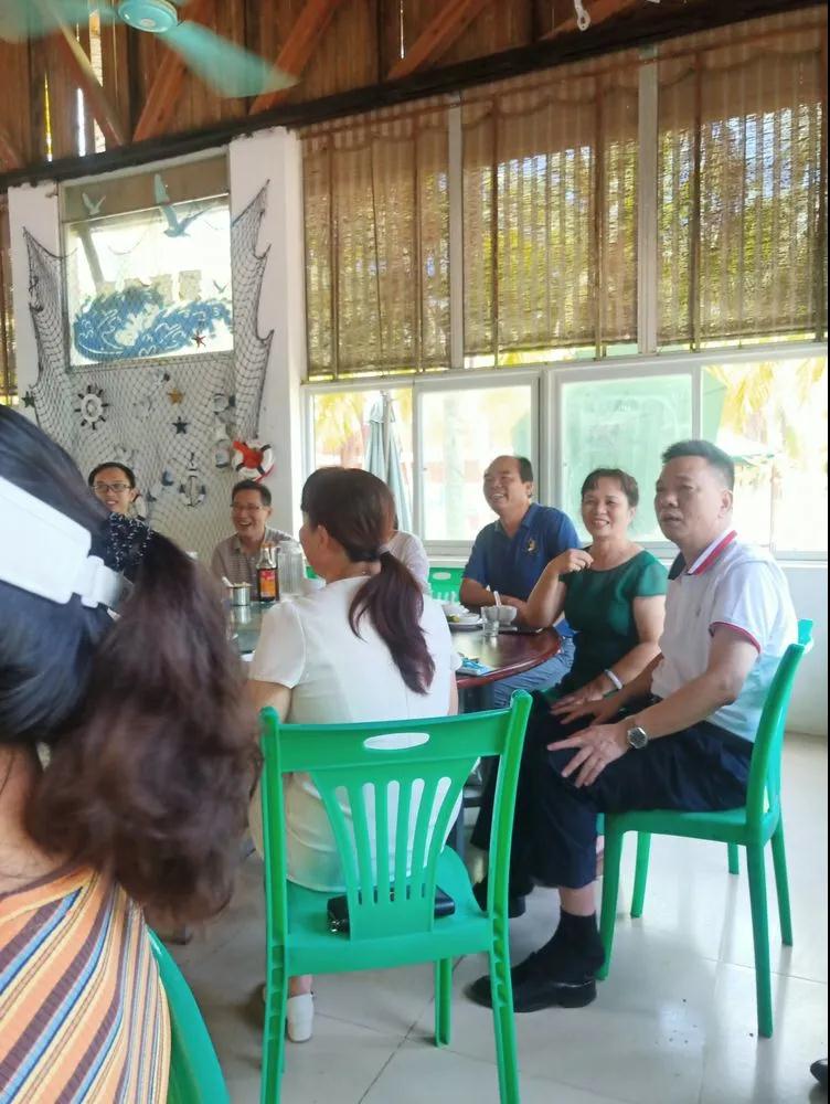 中午海边聚餐,各校友间相互介绍,并畅谈食品情节,美食美景欢声笑语…